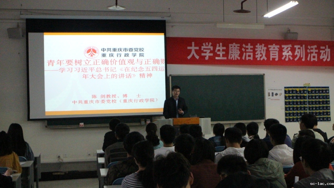 为进一步丰富毕业生廉洁教育形式,引导毕业生树立正确的价值观和财富观,扣好人生第一颗扣子,5月7日下午16:30,建筑与城市规划学院党总支举办了主题为《青年要树立正确的价值观和财富观》的讲座。本次讲座的主讲嘉宾是重庆市委党校陈剑教授,讲座由建筑与城市规划学院党总支副书记徐园媛主持。