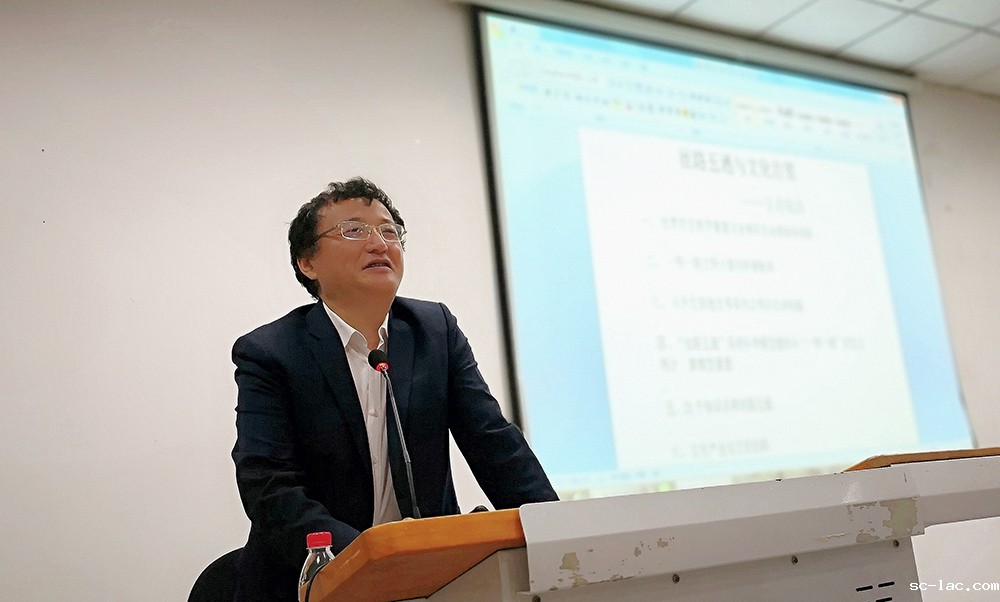 6月20日19:00,人文学院主办的“人文讲坛”之“文旅+交通”系列“丝路五通与文化自贸”专题讲座在创新创业园101教室举行,北京交通大学皇甫晓涛教授应邀主讲,院长张玉蓉主持。