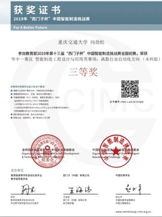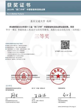 2019年第十三届“西门子杯”中国智能制造挑战赛华中赛区竞赛于7月19日在湖北宜昌三峡大学落下帷幕,我校由机电与车辆工程学院孙世政副教授和余腾伟副教授指导学生参加了离散行业自动化赛项,经过3天的激烈比拼,最终斩获二等奖1项,三等奖2项。