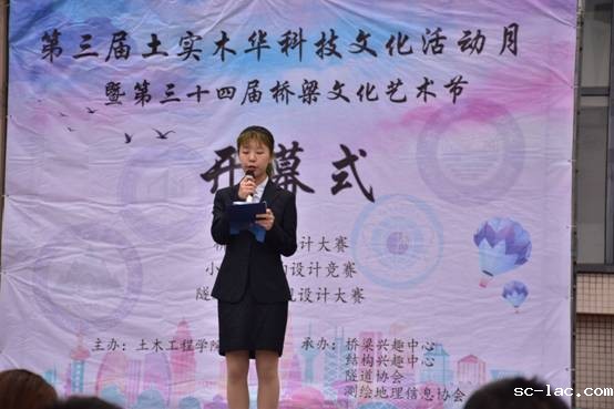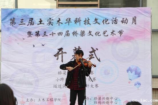 10月11日下午,由土木工程学院主办,桥梁兴趣中心、结构兴趣中心、隧道协会、测绘地理信息协会联合承办的第三届土实木华科技活动月暨第三十四届桥梁文化艺术节开幕式在双福校区湖滨广场举行。出席开幕式的领导嘉宾有学生德园小区管委会主任刘君老师,土木工程学院党委副书记舒琳老师,土木工程学院分团委书记谭涛老师,学工办主任王辉老师以及土木工程学院全体辅导员。