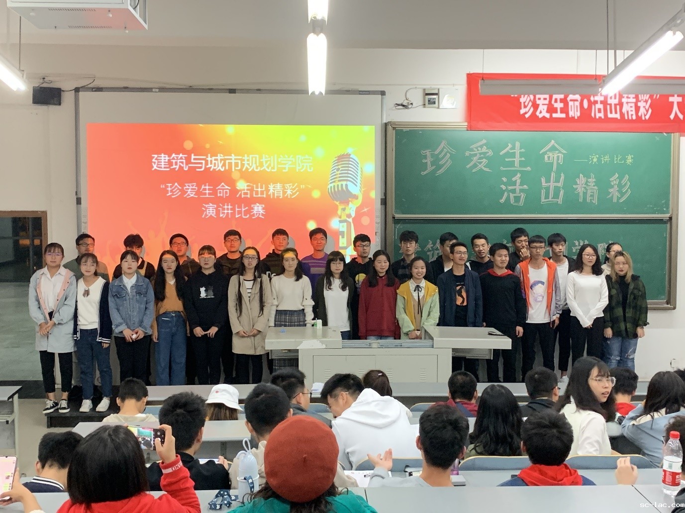 2019年建筑与城市规划学院“珍爱生命·活出精彩”为帮助学生进一步认知生命本质、体验生命成长、追求生命境界,树立正确的生命价值观,建筑与城市规划学院于2019年10月20日晚7点,在双福A01129教室举办了“珍爱生命·活出精彩”大学生生命教育主题演讲比赛决赛。学院党总支副书记、辅导员、专业教师和学生代表200余人到场观摩。