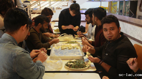 为丰富来华留学生校园生活,10月17日上午,国际学院在雅园小区举办“留学生体验中国文化”系列活动。留学生们欢聚雅园餐厅,亲自动手学包饺子,体验中华传统文化。来自7个国家的40余名留学生代表参加此次活动,他们分别来自人文学院、土木学院、经管学院和机电学院。国际学院副院长唐军、留学生工作科的老师们也来到现场与学生们一起感受包饺子的乐趣。