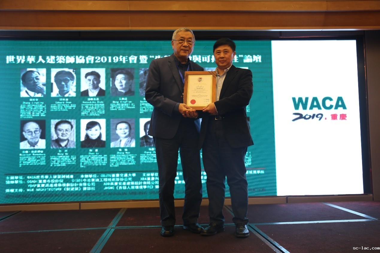11月16日晚,作为我校承办的WACA世界华人建筑师协会2019年年会主要活动之一,2019世界华人建筑创作奖颁奖典礼在我校隆重举行,参会会员、嘉宾、获奖代表及建筑界相关人士近两百人参与。颁奖典礼由世华建协秘书长苏晓河主持,我校建筑与城市规划学院院长凌天清致辞,世界华人建筑师协会会长沈埃迪宣布获奖名单,各获奖单位代表上台领奖并合影留念。