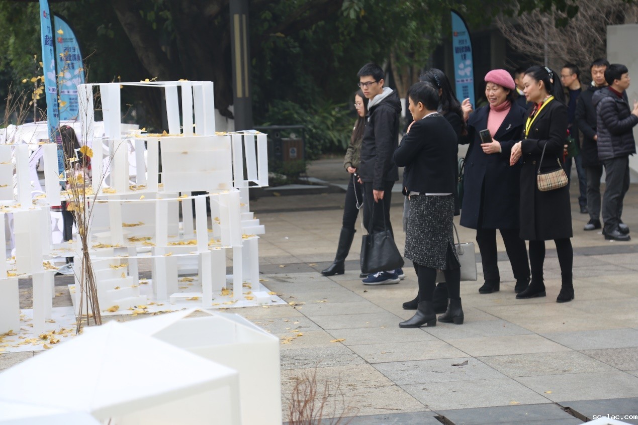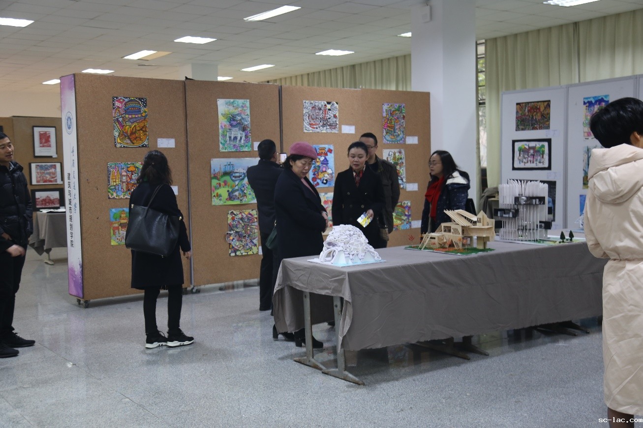 12月15日,2019重庆市大中小幼学生美育实践系列活动作品展在我校南岸校区学生活动中心正式拉开帷幕。本次作品展现场布置精巧、流线设计合理,通过图文展板、模型、艺术装置、文创产品等方式,集中展出了本年度获奖的各类作品百余件,全面展示了2019年我市美育实践系列活动的成果。开展当天吸引了各级领导、专家学者及全市大中小幼学校师生共计300余人观展,重庆市风景园林学会秘书长胡静萍、重庆市住房和城乡建设委员会村镇处陈果、南岸区教育委员会副主任朱静萍,我校副校长郑旭煦,宣传部部长白凯、教务处处长杨林、校团委副书记向巍、校科协汪雪波等职能部门负责人,重庆市南岸区青少年科技辅导站、北京奇松英才教育等企事业单位代表,以及建筑与城市规划学院负责人等嘉宾应邀出席作品展。
