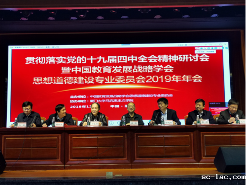 2019年12月28日,贯彻落实党的十九届四中全会精神研讨会暨中国教育发展战略学会思想道德建设专业委员会2019年年会在厦门举行。本次研讨会由中国教育发展战略学会思想道德建设专业委员会主办,厦门大学马克思主义学院协办,思想道德建设专业委员会各理事单位,厦门大学、兄弟院校的有关领导及相关负责人,以及从事思想道德建设研究的专家学者共150余人参加会议。