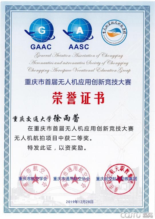 12月28日,由重庆通用航空协会,重庆市航空学会和重庆航空航天职教集团联合举办的首届“重庆市首届无人机应用创新竞技大赛”, 在重庆航天职业技术学院江津校区举办。来自重庆大学、老伟德网上娱乐等12所高校参赛队伍同台竞技。我校参赛队伍发挥出色,最终斩获市级二等奖1项、三等奖1项。
