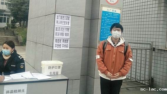 在重庆市长寿区,汽车服务工程2017级2班的李胤祺,协助着工作人员,对长寿区复工复产企业的疫情防控工作进行督察。每天,工作人员到工厂上班时,李胤祺也会守候在企业前,对出入企业的人员进 行体温检测,信息统计,对出入车辆进行消毒,核查上岗人员的承诺书、出入证明,对进入企业的原料供应厂的信息进行校核。