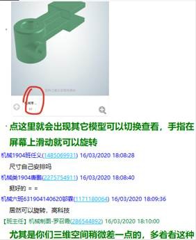 为保证教学效果,解决学生对机械零件结构理解难的问题,教研组竭力寻找解决方案,最后借助云端资源,让学生仅使用手机微信或者QQ扫二维码方式,轻松将多个零件三维呈现眼前,手指在屏幕上滑动轻松控制模型转动,直观学机械。