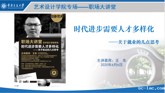 为了更好地打通 “职业-学业-就业”通道,在“就业季”、“毕业季”即将到来之际,帮助学生更好地了解行业发展以及最新就业形势,促进学生科学定位、理性择业、顺利就业,学院于2020年6月6日晚上20:00通过腾讯会议室进行线上讲座,开展了大学生《职场大讲堂》活动。这也是艺术设计学院自2018年7月独立办学以来的首次专场。
