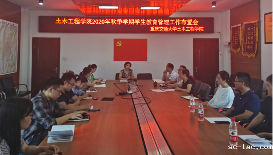 2020年9月4日下午3:00,土木工程学院2020年秋季学期学生教育管理工作布置会在学院90207会议室举行,学院党委副书记舒琳,分团委书记谭涛,学工办主任白雪及全体辅导员参会,本次会议由分团委书记谭涛主持。