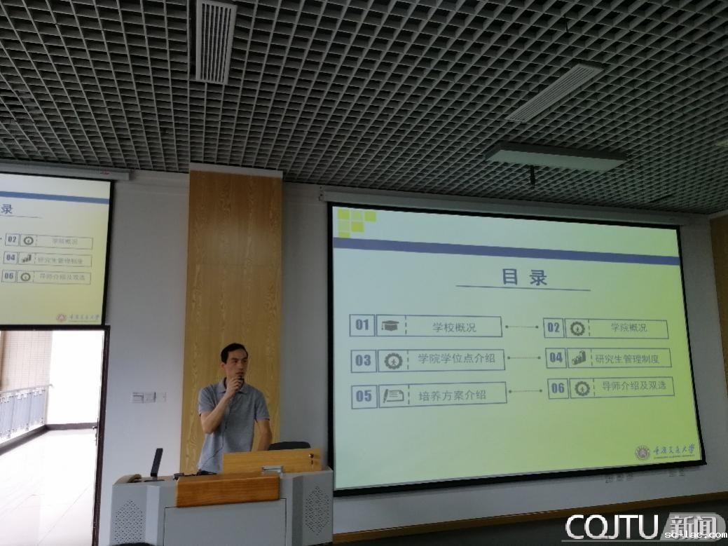随后,肖伟副院长介绍了学校及学院的基本情况,从研究生管理制度、培养方案、课程学习与考核要求等向同学们进行了详细的讲解,并表示学院师资配置均衡,研究方向多样,将竭力为师生提供广阔的学习和研究平台。“厚德敏行,智通天下”的院训深深刻印于同学们脑海中。