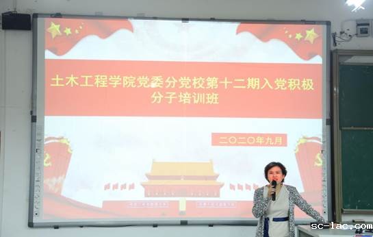 2020年9月22日晚18点30分,土木工程学院党委分党校第十二期入党积极分子培训班开班仪式在双福校区A01238教室举行。学院党委副书记舒琳老师、学院党委委员、分团委书记谭涛老师、组织员、学工办主任白雪老师、2020级辅导员张荣杰老师及222名入党积极分子学员参加了开班仪式。
