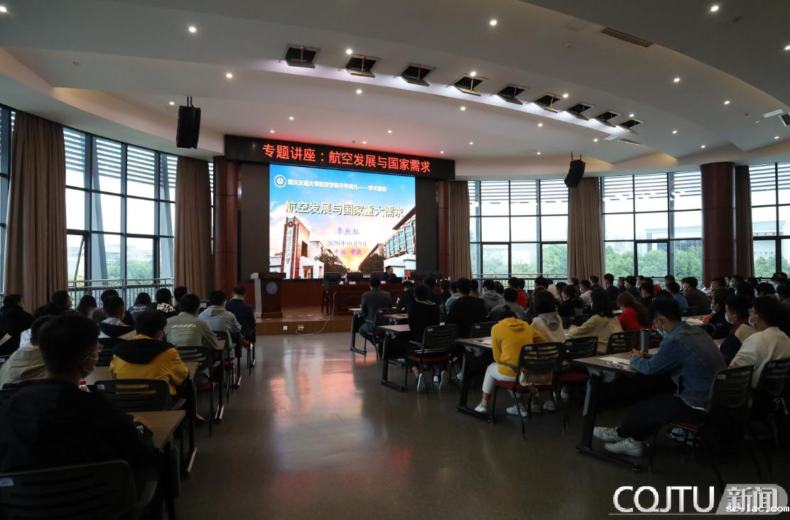 10月9日下午,中国科学院院士、重庆航空学院名誉院长李应红教授来到双福校区,为航空学院2020级全体新生分享了“第一堂入学教育课”,主题为“航空发展与国家需求”。航空学院院长张铭主持入学教育环节。