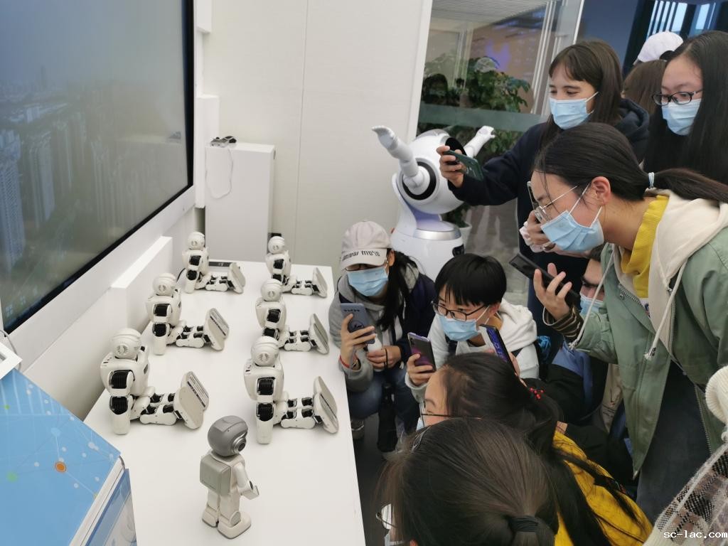 活动第二阶段,阿里云创新中心工作人员组织学生分批次到“重庆数字经济发展展示中心、中国信息通信研究院西部分院、中移物联网、阿里云AIoT展示中心、重庆卫士盾感知数字技术有限公司”等实践基地进行参观学习。展厅通过环幕互动投影、壁纸屏、幻影成像等交互产品和数据展示,让同学们快速且深刻地了解重庆市智能产业发展、大数据智能化推进、传统产业优化升级、智能化应用、创新体系构建、高速安全信息基础设施建设、智慧消防应用、龙头企业创新创业历程等情况。在参观过程中,同学们还与机器人开心互动,切身体验人脸识别系统、VR设备,直观地感知了云计算大数据、无人科技、人工智能、智慧医疗等科技元素。