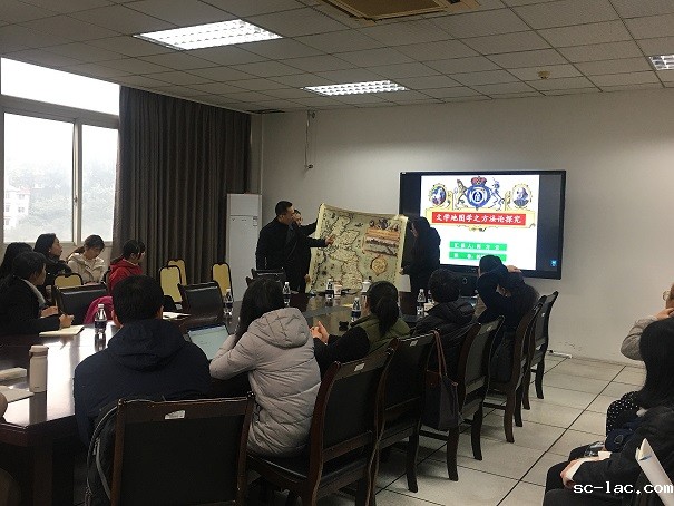 随后,郭教授介绍了英美文学地图学研究现状和六大阶段,并呈现了1992-2018年间文学地图研究的30多项成果。讲座期间,郭教授主要从“政治想象”和“性别诗学”两种向度来探究这种新兴文学批评实践的语用策略,从多角度展示文学地图学方法论独特学术魅力。