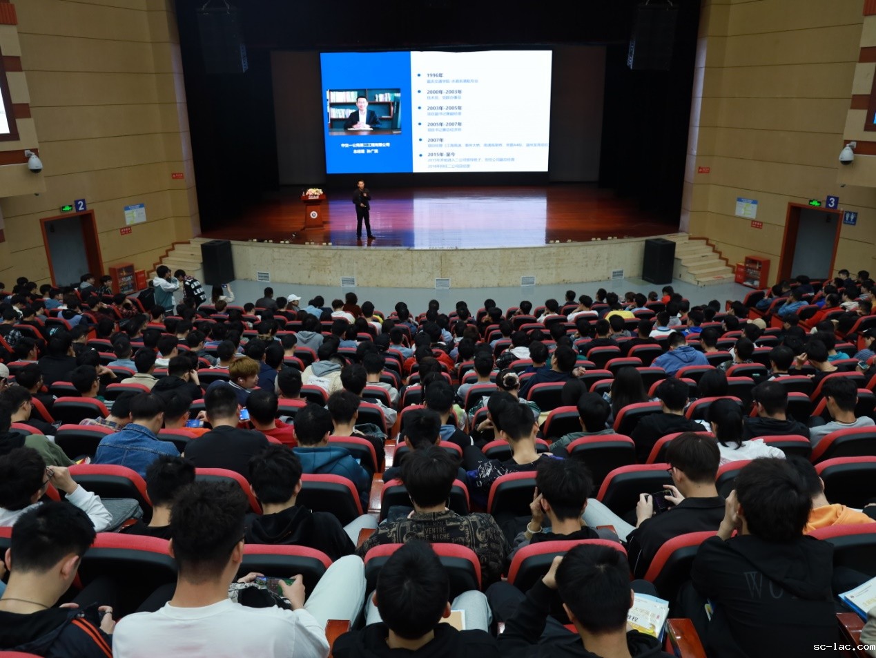 土木工程学院副院长朱洪洲致辞。“你们知道自己未来要做什么吗?”朱洪洲首先向大家阐述了本次讲座的意义所在:“土木工程学院致力于为交通基础设施的建设培养人才,在座的各位都应当为祖国交通基础设施的建设作出贡献。”朱洪洲表示:“我国是一个交通大国,不计其数的道路、桥梁、隧道需要修建保养,保证各种交通基础设施的完好、扩建于我们而言意义重大,这些都要靠在座的各位,大家的未来任重而道远。”