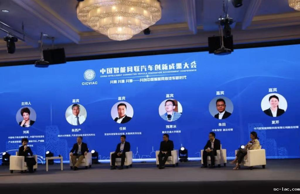 在大会杰出人物访谈阶段,我校机电学院隗寒冰教授受邀上台围绕当下汽车芯片、车路协同、大数据与信息安全、测试区落地应用等智能网联汽车产业热点话题展开了深刻讨论,共同为智能网联汽车未来发展献言献策。