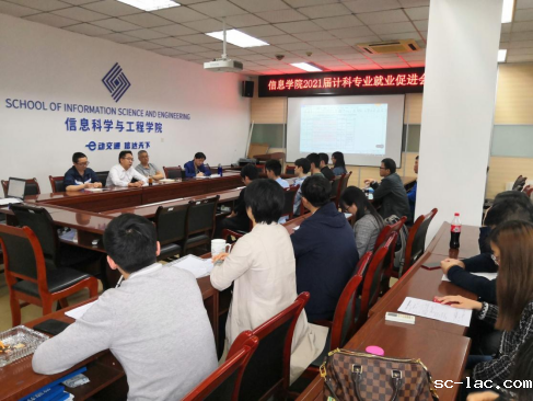 4月23日下午,信息学院组织召开2021届计算机科学与技术专业就业促进会,会议由学院党委副书记潘江主持,党委书记曹建秋、院长杨建喜、副院长李益才、计算机科学与技术专业系主任王家伟、计科专业全体教师和未就业毕业生代表参加会议。
