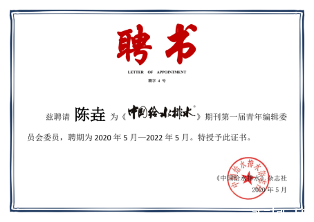 近期,根据《安全与环境学报》期刊官网显示,我校河海学院陈垚教授从400余名青年专家中脱颖而出,成功入选2021年《安全与环境学报》青年编委(共88名)。此前,陈垚教授已于2020年从260余名青年专家中脱颖而出,成功入选给水排水领域行业权威期刊《中国给水排水》的青年编委(共123名)。陈垚教授的成功入选是同行专家对其在水环境和给排水领域取得成果的认可,为青年教师起到了良好的榜样作用,也对给排水科学与工程专业的发展起到了推动作用。
