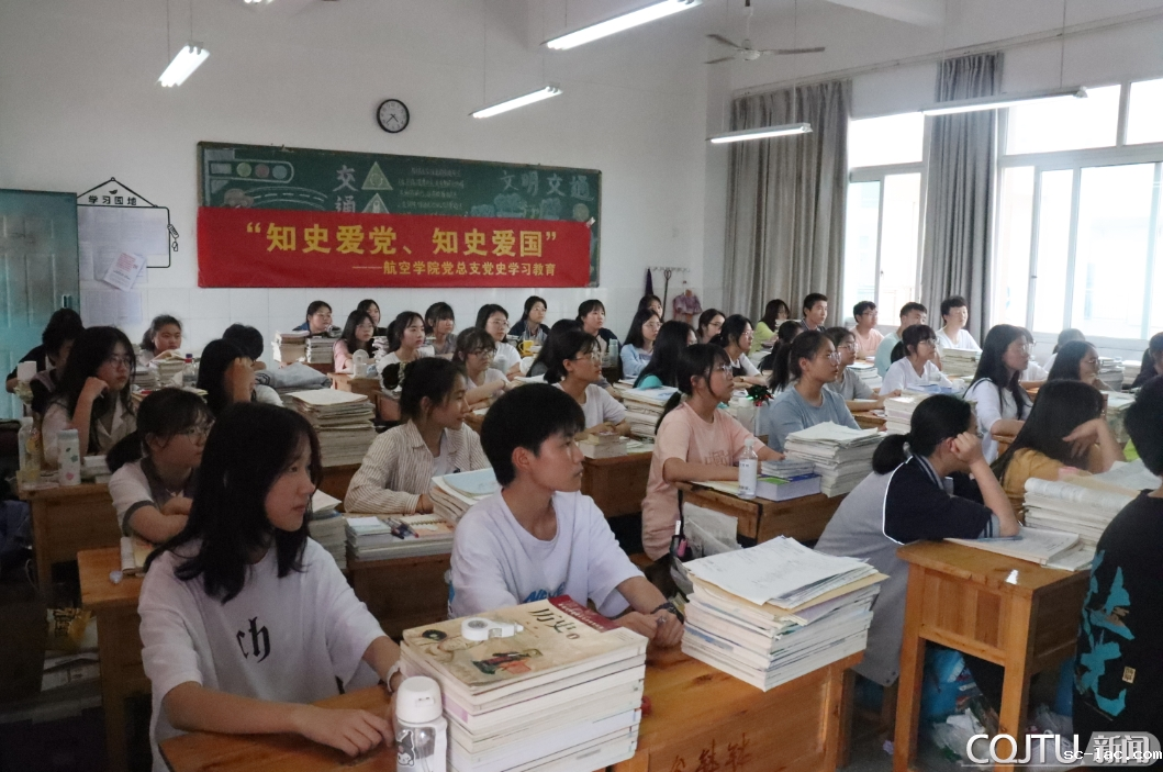 航空学院学生通过革命歌曲、情景再现、新闻图片等方式,带领大家回顾了中国共产党的光辉历程,重温激情燃烧的岁月。