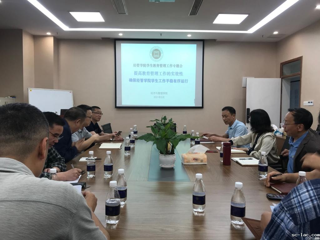 为提高教育管理工作的实效性,确保经管学院学生工作平稳有序运行,5月12日,经管学院召开学生教育管理工作专题会。校学生工作部部长何荣波、副部长杨川,校安全管理处处长李志、副处长黄廷强,校学生工作部科学城校区管委会副主任刘君等应邀到会指导,经管学院党委书记魏铜铃、院长李红镝、党委副书记张庆民以及学生工作干部参加会议。
