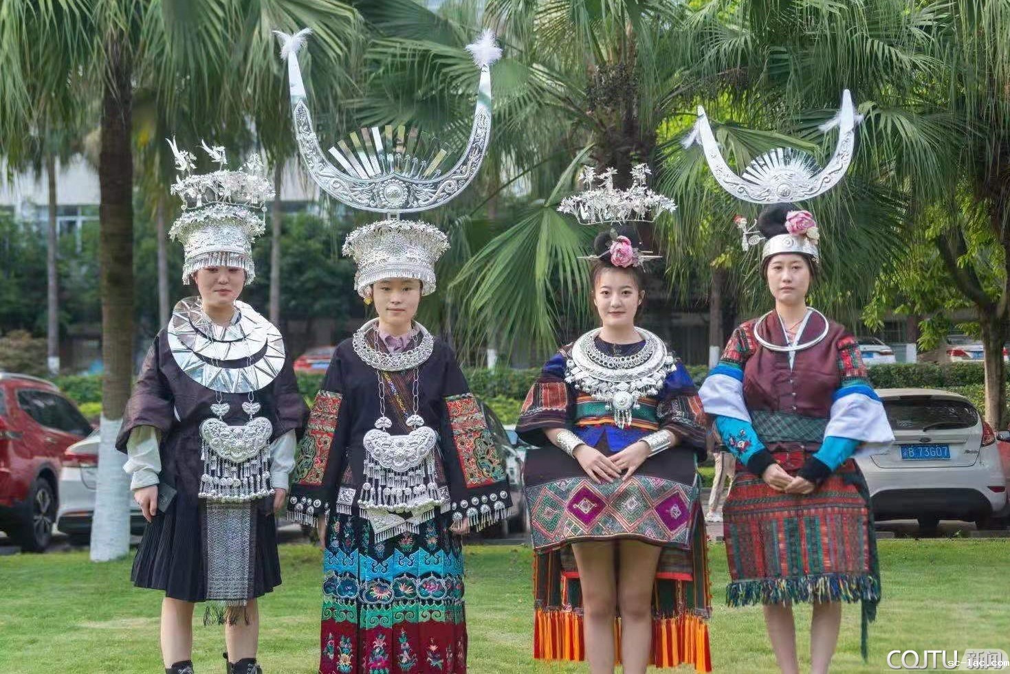 专家讲授苗族服饰。传统苗族服饰大量运用刺绣工艺,通过造型与颜色的夸张手法,表现苗族创世神话和传说,非常具有独特性。学院特邀贵州丹寨苗族文化守望者——苗族自由设计人王石丹老师来校讲学。在课堂上,王老师亲自传授苗族的文化、历史、手工艺等知识,以苗族服装及首饰为载体,为同学们详细讲解了蜡染、扎染、刺绣工艺以及苗银锻造工艺等。同学们还穿戴苗族服饰,亲身感受到苗族手工艺的魅力。