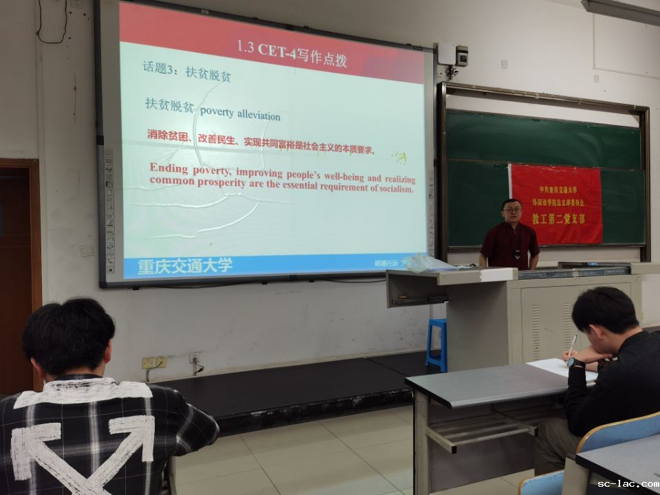 大学英语四六级考试将于本月中旬进行,为进一步提升考生备考水平,外国语学院教工第二党支部2021年6月3日在科学城校区A01237阶梯教室为土木、河海、交运、航空等学院2020级学生约200人举办了一场大学英语四级考试考前辅导。本次讲座由党支部书记李勇副教授主讲。