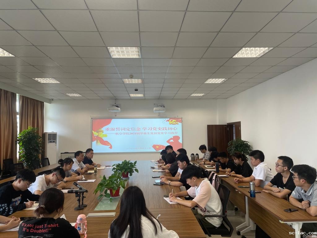 6月21日,航空学院2021届毕业生党员党史学习教育——“重温誓词定信念 学习党史践初心”在科学城校区致远楼336会议室举行,学院党总支书记刘元丰、全体毕业生党员及2018级学生党员共计25名党员同志参会,会议由学院党总支组织委员、学院办公室主任孟立主持。