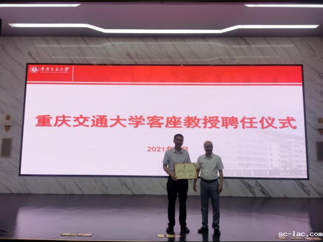 副校长黄承锋为唐海波教授颁发重庆交通交通大学客座教授聘书