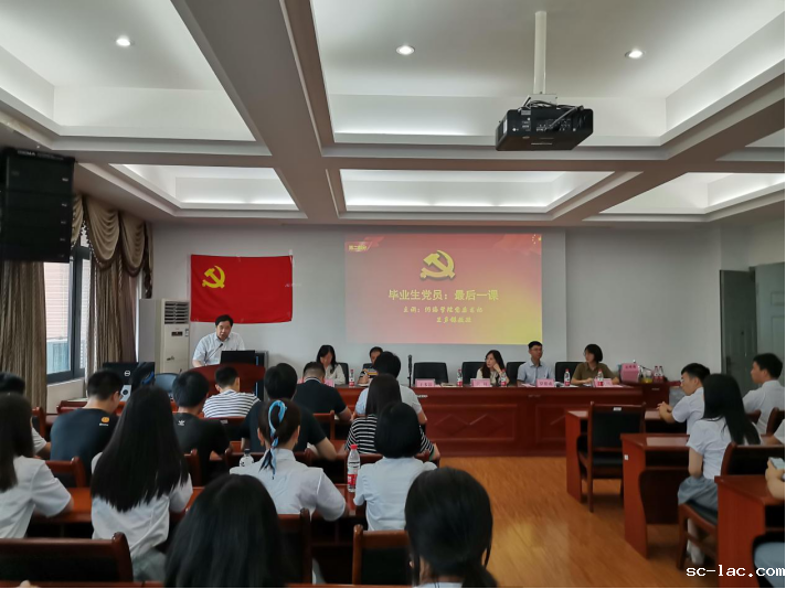 嘹亮而庄严地齐唱国歌后,学院党委书记王多银老师向全体毕业上党员上最后一课,对全体毕业生党员提出了四点期望。第一、恪守政治规矩,严守政治纪律,树立底线红线意识。第二、加强政治理论学习,坚定理想信念,时刻清楚党的大政方针,积极参加党的政治生活,提高党性修养,做到思想上进入,政治上可靠。第三、牢记初心和使命,永葆为人民服务的政治本色,立足岗位,多做贡献,为实现新时代党的历史使命而努力奋斗。第四,在以后的学习、工作、生活中注重身心健康,为实现美好愿望、幸福美满的家庭保家护航。