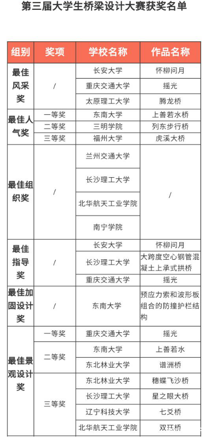 除获得最佳景观设计一等奖外,我校学子还获得桥梁结构设计“优秀设计奖”1项。