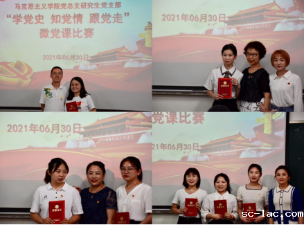 为深入学习贯彻习近平总书记在党史学习教育动员大会上的重要讲话精神,激励党员同志做到“学党史 悟思想 办实事 开新局”,以昂扬饱满的姿态喜迎中国共产党成立100周年,马克思主义学院研究生党支部于6月30日下午在20502教室特举办“学党史·知党情·跟党走”主题微党课比赛,产生热烈反响。
