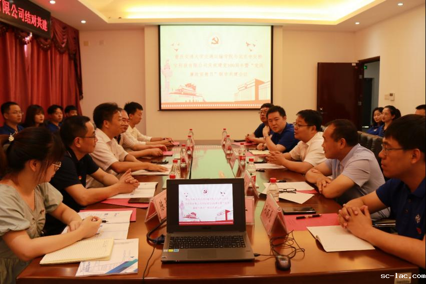 为促进校企合作,加强党建引领新发展,7月15日上午,交通运输学院党委与北京中交桥宇科技有限公司开展庆祝建党100周年结对共建活动。桥宇公司党总支副书记、总经理姜宏维,纪检委员、副总经理裴大明、四川生产经营中心总经理江东、市场开发部总经理刘亦凡,检测咨询事业一部经理杨亮亮等一行20余人来我院开展结对共建活动,交通运输学院党委书记胡浩、纪委书记李建东、党委副书记刘增福及支部书记和党员代表参加本次活动。