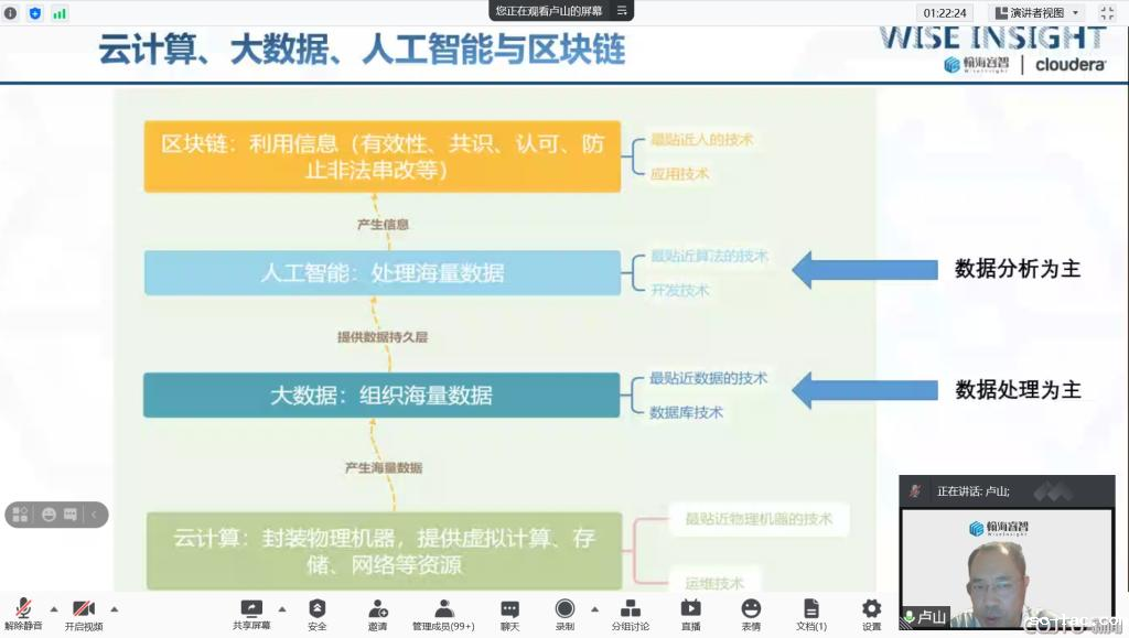 会议第二阶段,邀请两名企业负责人分别做了“数据人才时代需求发展”和“脚踏实地拥抱未来”两场报告。瀚海睿智科技有限公司总经理卢山对数据时代的基本特点、人才需求等方面做了详细的介绍,并针对学院专业特点、对就业提出了针对性建议。湖北立成信息技术有限公司董事长向绍成分享了自己创业的经验与经历,重点讲述了创业过程中如何将理论知识与应用实践结合起来,对拓展学生知识视野方面也给予了宝贵的意见。
