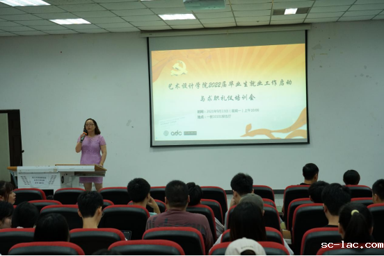 为贯彻落实教育部2022年普通高校毕业生就业工作会议精神,提前谋划、精心组织,认真做好学院2022届毕业生就业工作,9月13日上午,艺术设计学院在南岸校区第一教学楼10101报告厅举行了2022届毕业生就业启动与求职礼仪培训会。学院党总支副书记李世佼、环境设计系主任杜涛、产品设计系主任罗显怡、视觉传达设计系主任赵青青以及2022届全体毕业生参加,会议由学工办主任兼2022届毕业班辅导员王辉主持。