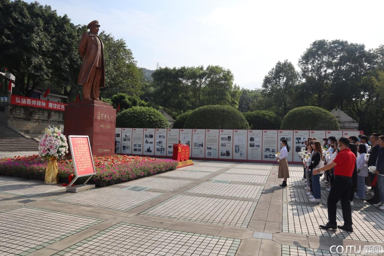 经管团员代表手持秋菊,身着正装在讲解员的讲述和引导下,走进聂帅的时光长廊。聂帅在开国之路上的每一个足迹、每一句誓言都在这所陈列馆里重现,让每一个参展的新青年更全面立体地认识到这名伟大的先烈,感受到他的远见卓识、自强不息以及对祖国最深沉的爱和对党最无私的奉献。