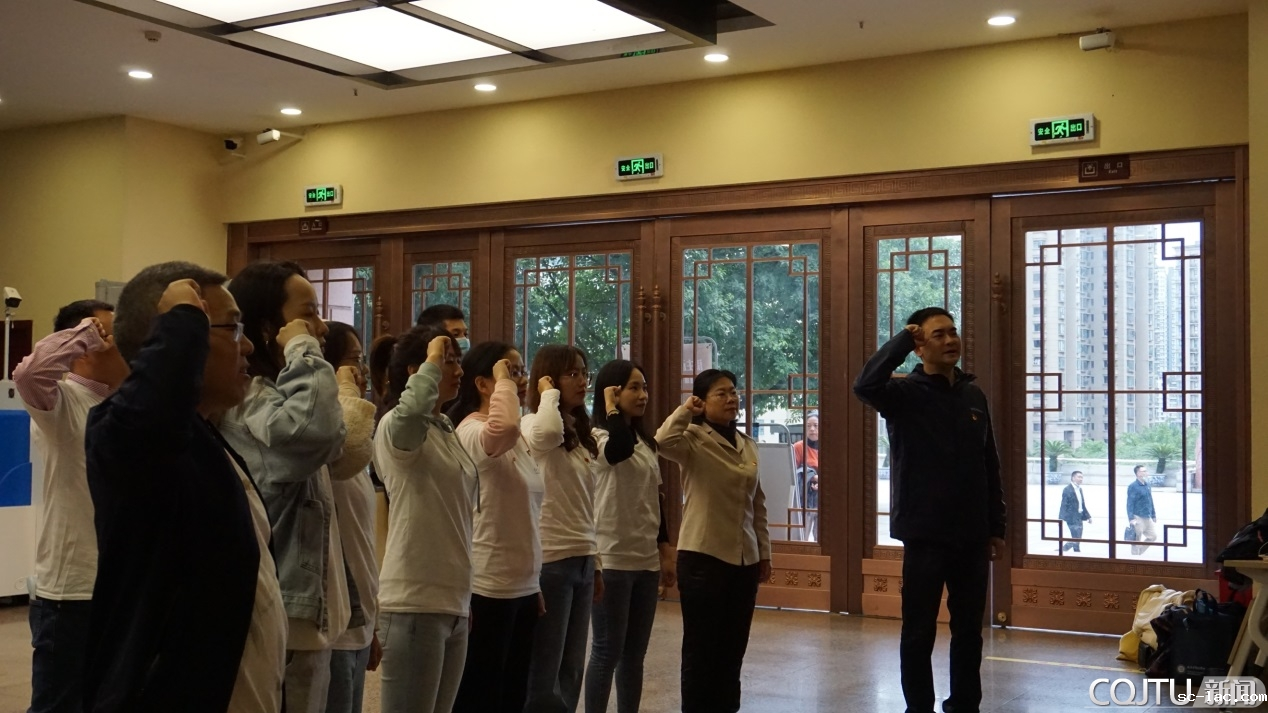 移动课堂结束前,大家在老伟德网上娱乐MBA教育中心姚琦教授的领誓下,面对党旗重温了入党誓词。