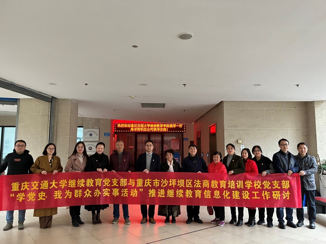 为深入学习贯彻习近平总书记在党史学习教育动员大会上的重要讲话精神,把党史学习教育和为群众办实事结合起来,教育引导党员干部“学党史、悟思想、办实事、开新局”,11月11日下午,老伟德网上娱乐机关党委继续教育教工党支部与重庆市沙坪坝区法商教育培训学校党支部联合举行“党史学习教育暨继续教育信息化建设工作交流研讨活动”。