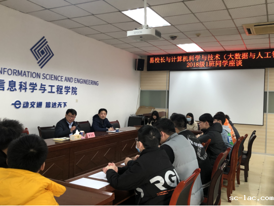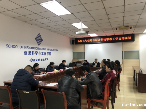 为深入学习宣传贯彻党的十九届六中全会精神,推动党史学习教育走深走实,进一步加强与学院基层的联系沟通,及时解决学院存在问题,11月26日下午,校党委常委、副校长易志坚前往信息科学与工程学院与教工党支部和学生班级进行座谈交流。信息学院党委书记胡浩、副书记潘江、计科物联教工党支部党员、计算机科学与技术(大数据与人工智能)2018级1班同学共计50余名师生参加。此次交流分两个阶段座谈,分别由学院党委书记胡浩、副书记潘江主持。