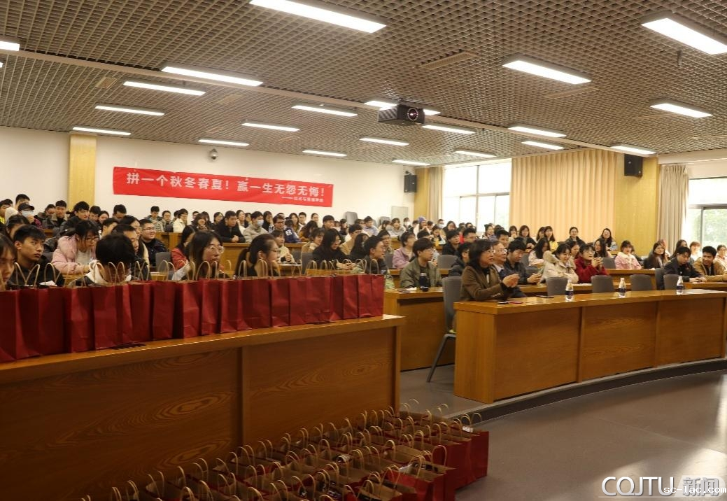 学院领导、相关辅导员和在校研究生代表为各位考研学子送上贴心准备的“考研加油包”,给大家加油鼓劲。