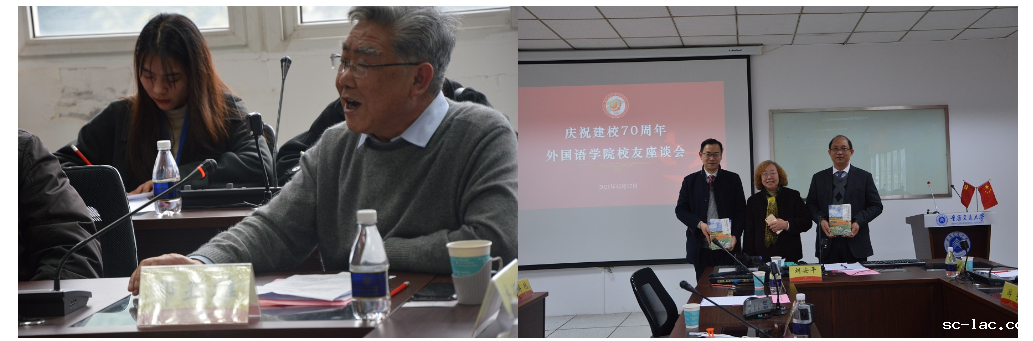 2021年12月12日下午,外国语院在南岸校区语音楼召开建校70周年校友座谈会。从全国各地返校的近30名校友与学院领导班子成员、部分学院老领导以及师生代表欢聚一堂,重温青春记忆、畅叙师生情谊、畅想未来发展。会议由副院长刘安平主持。