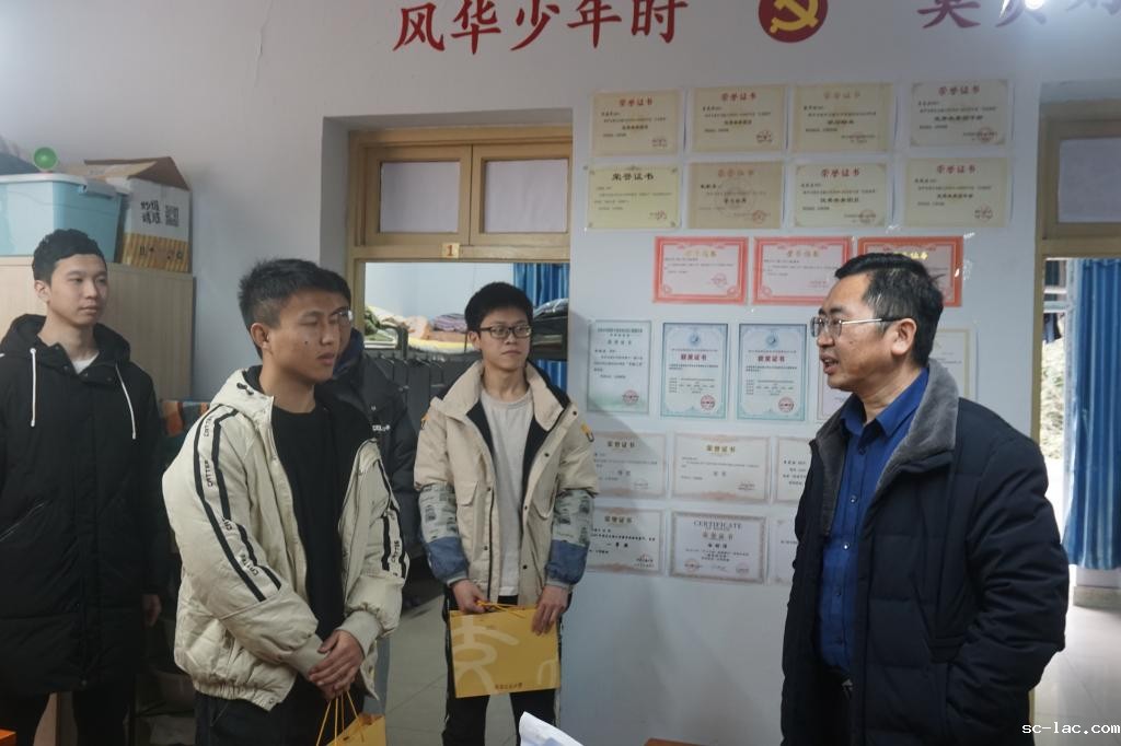 任海涛来到了菁园七栋一单元204寝室,该寝室曾被评为“重庆市五星级文明寝室”。任海涛与同学们深入交流,对同学们的学习、生活等各方面表示关心,并暖心地为同学们带去了礼物,勉励同学们确定未来的发展方向。交流过程中,他还饶有兴致地与学生们讲述他与菁园寝室的渊源。