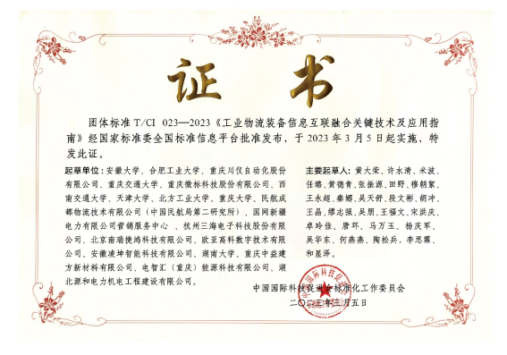 近日,信息学院米波教授、张振源副教授作为主要起草人编制的《工业物流装备信息互联融合关键技术及应用指南》(标准号:T/CI 023-2023)经国家标准委全国标准信息平台批准发布。