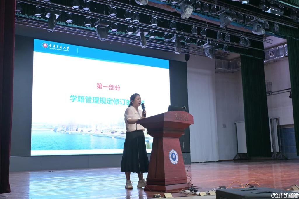 教学办副主任孟彩侠就学分制管理规定进行宣讲。孟彩侠从学籍管理规定修订的背景、学籍管理规定具体内容、配套相关规定及办理流程等方面对普通本科学生学籍管理规定及相关制度进行了宣讲与解读,最后提供了学校及学院教学管理机构的联系方式。她表示,学院教学管理部门将始终秉承“以学生为本”的理念,竭诚为学生提供优质的服务和支持。