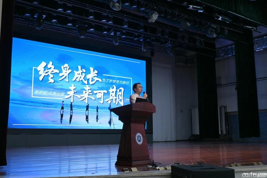 党委书记叶四桥亲授开学第一课。叶四桥以“终身成长未来可期”为主题,先抛出“新时代需要什么样的人?”的问题引发同学们思考,再以克服“四座大山”为动力,给同学们的成长发展提出了宝贵的建议:一是要尽早想好如何度过这一生,二是尽早找到毕生的热爱,三是用好认知10000小时定律,四是建立高标准和珍视声誉,五是“干起来”,主动寻求资源支持锻炼机会,六是“读起来”,养成终身阅读的习惯。
