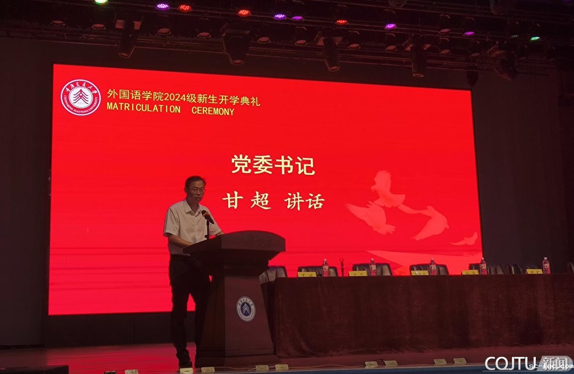 党委书记甘超在讲话中向新同学提出三点希望,一是要提升主观世界,做有家国情怀的新时代外语人;二是要精语言、通世界,练就探究世界、讲述中国的真本领;三是要借助学校平台去跨学科学习,注重培养适应社会的综合能力。