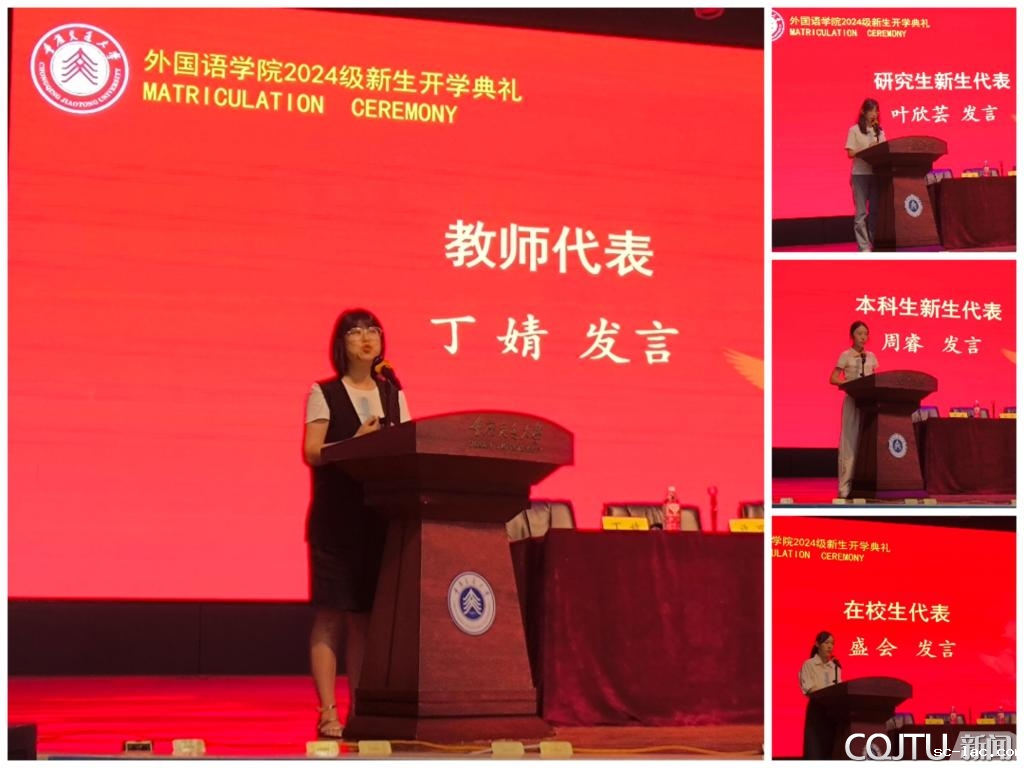 教师代表丁婧分享了学习经验,并提出三个关键词:目标,努力和收获,鼓励新生们勤奋学习,勇于探索。在校生代表盛会用自己在重庆交大学习生活7年的亲身经历,勉励他们珍惜大学时光,以多元的视角去理解世界。研究生新生代表叶欣芸和本科新生代表周睿分别发言,她们表达了对学院的热爱和对未来学习生活的期待,展现了新生们的蓬勃朝气和昂扬斗志。
