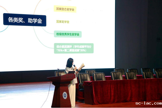 “大学学习生活有丰厚的奖学金可以申请,也有同学们容易忽视的规章制度”,谭自慧结合学生教育管理工作,系统、逐一领学了《学生手册(2024版》,为新生们清晰的讲解了各类奖学金、助学金评定标准、评优评先、综合素质测评等内容。她提醒同学们要严肃对待第二课堂成绩对学期综合素质评价的影响。为避免出现违纪行为,她着重强调了学校对违纪行为处理情况,建议同学们“不踩红线,不越底线”。