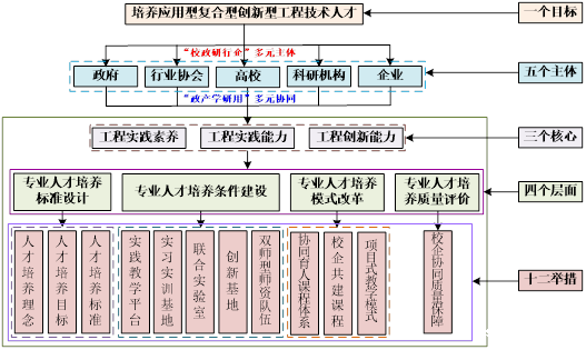 根据OBE理念,构建各参与主体全过程深度参与的“一个目标、五个主体、三个核心、四个层面、十二举措”多元协同育人体系,并构建了航空专业多元协同育人实践平台。
