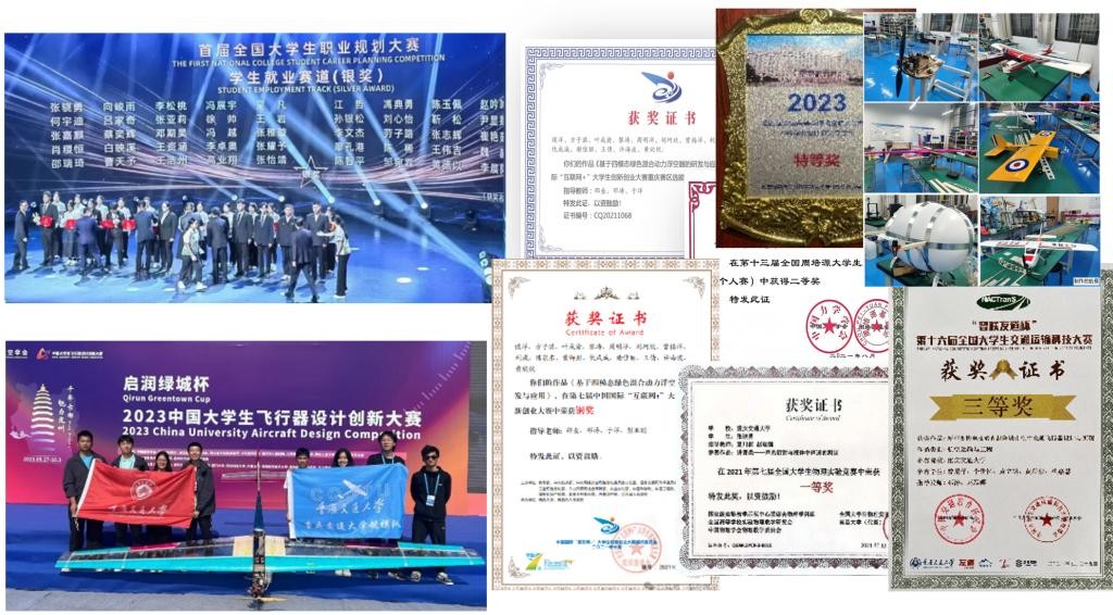 学院历届毕业生就业率超90%、升学率超30%;百余名毕业生被北航、南航、西工业、浙大、同济、北理工、西交大、重大、中科院大学等高校录取深造。学生先后获得国际民航组织下一代航空专业人才全球峰会论坛总冠军、第四届全国高等学校航空航天类专业本科毕业设计成果交流会特等奖、第十七届全国大学生节能减排社会实践与科技竞赛铂金奖(特等奖)、第十三届全国周培源大学生力学竞赛全国个人赛二等奖、中国国际“互联网+”创新创业大赛获国家级铜奖、全国大学生职业规划大赛高教组就业赛道银奖等奖励100余项,承担4项国家级、8项市级大学生创新创业项目。